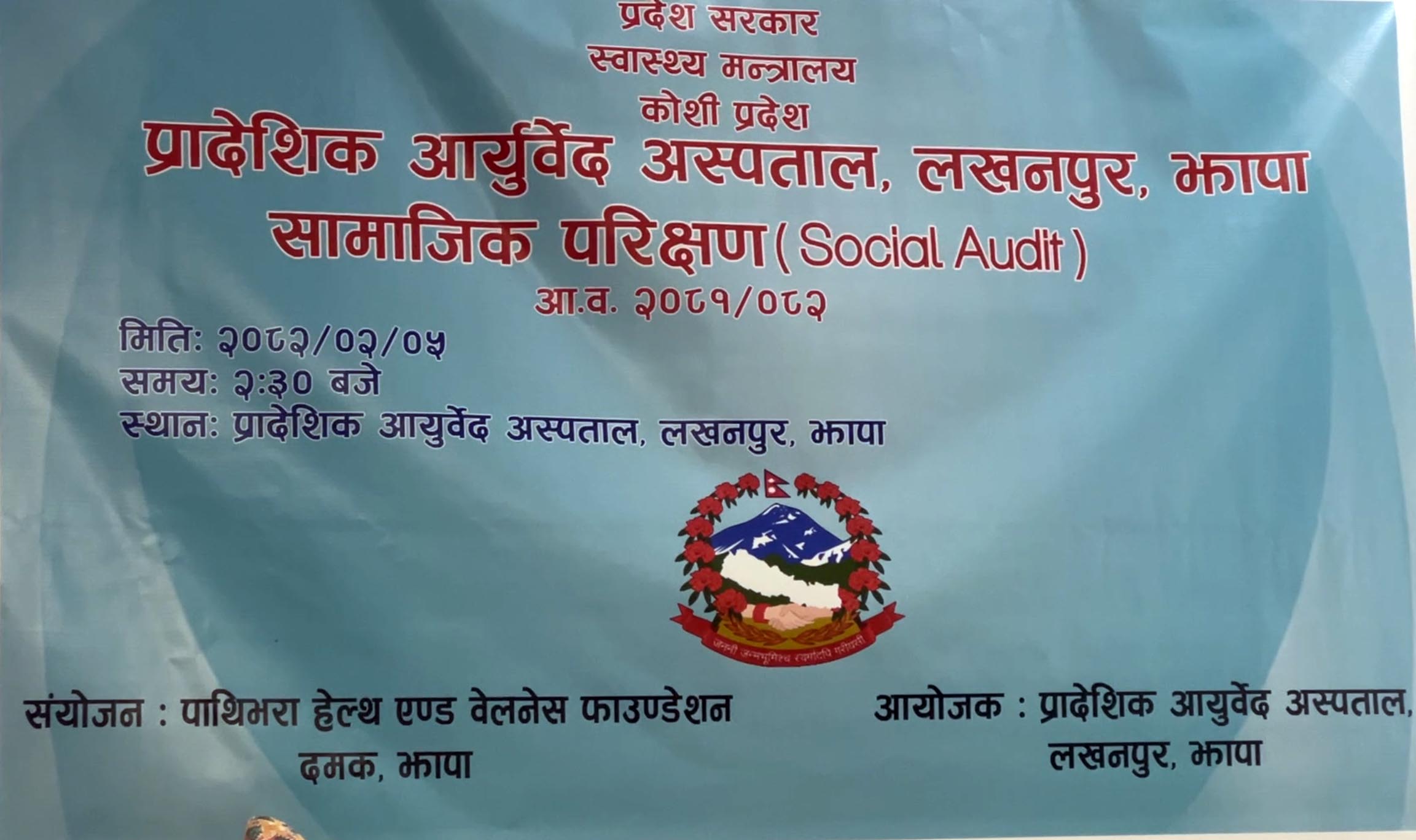 अस्पतालकाे सामाजिक परिक्षण कार्याक्रममा अस्पतालका निमित्त निर्देशक डा. सिद्धार्थ ठाकुरले ३ बर्ष अघि एक जना वैध राखेर क्लिनिकको रुपमा थालेको अस्पतालमा अहिले सुविधासम्पन्न अस्पतलामा हुने अधिक सेवा दिन थालिएको बताउनु भयो । कार्याक्रममा इलामको चुलाचुली, झापाका गौरादह, दमक, गौरीगंज लगायतका पालिका प्रमुख तथा प्रतिनिधिले स्वास्थ्य सेवाका लागि सवैले सहयोग गर्ने बताएका छन् । चुलाचली गाउँपालिकाका अध्यक्ष राजेन्द्र केरूङ, गाैरीगंज गाउँपालिकाकी उपाध्यक्ष पुजन न्याैपाने कुँवर, कमल गाउँपालिकाकी उपाध्यक्ष प्रमिला न्याैपाने, गाैरादह नगरपालिकाका प्रमुख छत्रपति सुवेदी, वडाध्यक्षहरू, सेवाग्राही र कर्मचारीले अस्पतालकाे विकासमा सामुहिक प्रयास खाँचाे रहेकाे बताएका छन् ।