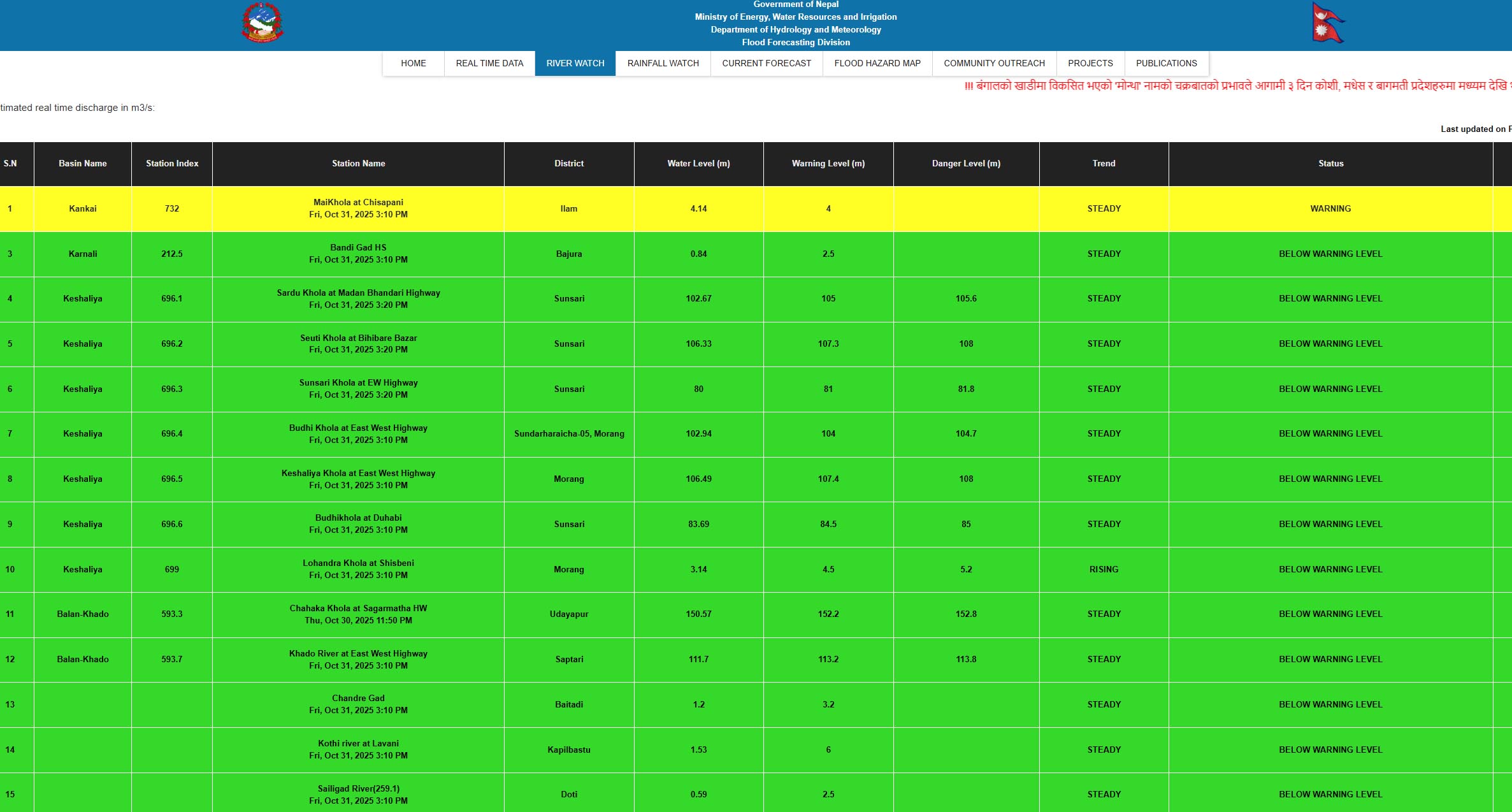 कन्काई नदिमा बाढी बढ्न थालेसँगै कटान क्षेत्रमा बाढी पस्ने खतरा बढेको छ । यस अघि असोज महिनामा आएको बाढीले कटान गरेको गौरीगंजको रंगियाथान दक्षिण पश्चिम क्षेत्रमा बाँध फुटन लागेकाले दक्षिणी क्षेत्रमा सचेत रहन महाभारा प्रहरी चौकीले सूचना जारी गरेको चौकीका प्रमुख प्रहरी सहायक निरीक्षक सरोज रेग्मीले जानकारी दिनु भएको छ ।