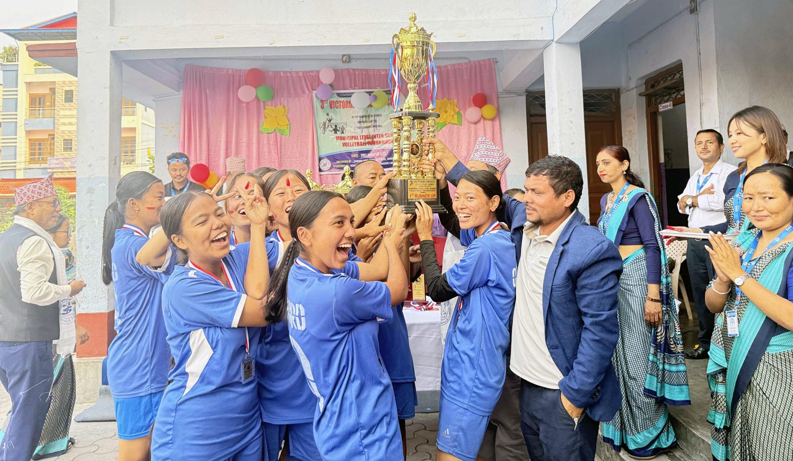 मंसिर ५ गते देखि भएको भलिवल खेल प्रतियोगितामा ८ वटा छात्रा र १२ वटा छात्रको टीमको सहभागिता रहेको थियो । आमन्त्रित विधालय स्तरीय भलिवल प्रतियोगितामा पहिलो, दोस्रो र तेस्रो हुनेलाई क्रमशः नगद रु १५ हजार, १० हजार र ५ हजार नगद सहित ट्रफी, मेडल र प्रमाण पत्र प्रदान गरिएको छ । कार्याक्रमको उद्घाटन खेलको आयोजित कार्याक्रकी प्रमुख अतिथि दमक नगरपालिकाकी उपप्रमुख रेगिना भट्टराई प्रसाईंले भीसी रामबहादुर वेघाले प्राप्त गर्नु भएको विरताको पदकले दमकको मात्र नभइ देशकै शीर उच्च राखेको बताउनु भयो । उहाँले यस्तो प्रतियोगिताले विधालय स्तरबाटै खेलको विकास हुने बताउनु भयो ।